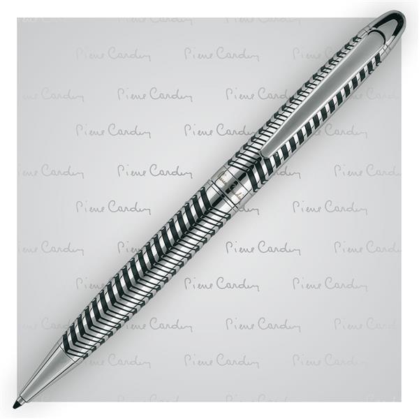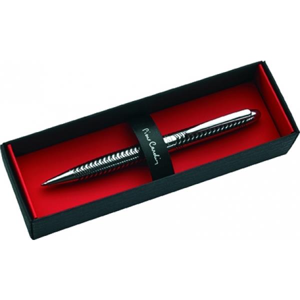 Luksusowy długopis metalowy z charakterystycznym, grawerowanym korpusem i czarnymi elementami. Wyposażony w wysokiej jakości niebieski wkład z końcówką 1 mm. W zestawie z wkładem zapasowym piszącym na czarno. Zapakowany w eleganckie pudełko prezentowe z certyfikatem autentyczności Pierre Cardin.