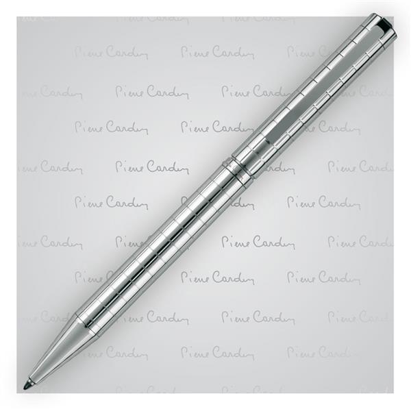 Nowoczesny długopis metalowy z oryginalnym, grawerowanym korpusem i mechanizmem obrotowym. Wyposażony w wysokiej jakości niebieski wkład z końcówką 1 mm. W zestawie z wkładem zapasowym piszącym na czarno. Zapakowany w eleganckie pudełko prezentowe z certyfikatem autentyczności Pierre Cardin.