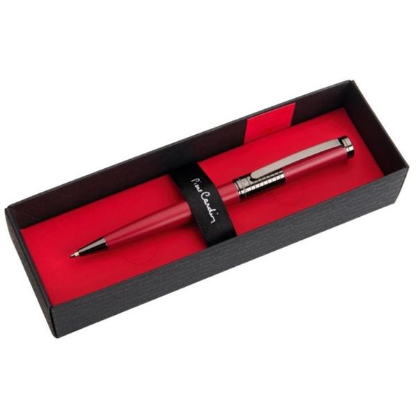 Elegancki długopis metalowy z gładkim korpusem oraz ciemnymi detalami. Wyposażony w wysokiej jakości niebieski wkład z końcówką 1 mm. W zestawie z wkładem zapasowym piszącym na czarno. Zapakowany w eleganckie pudełko prezentowe z certyfikatem autentyczności Pierre Cardin.