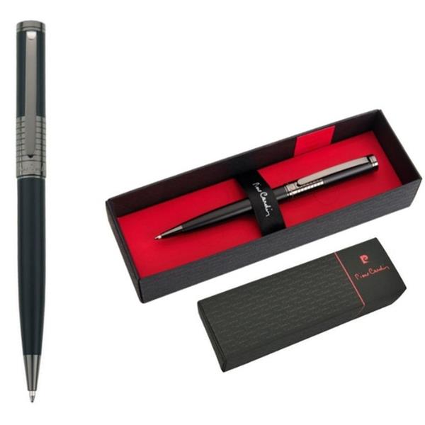 Elegancki długopis metalowy z gładkim korpusem oraz ciemnymi detalami. Wyposażony w wysokiej jakości niebieski wkład z końcówką 1 mm. W zestawie z wkładem zapasowym piszącym na czarno. Zapakowany w eleganckie pudełko prezentowe z certyfikatem autentyczności Pierre Cardin.