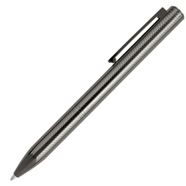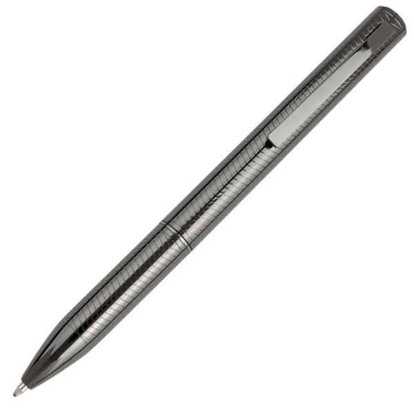 Luksusowy długopis metalowy z oryginalnym, grawerowanym korpusem i mechanizmem obrotowym. Wyposażony w wysokiej jakości niebieski wkład z końcówką 1 mm. W zestawie z wkładem zapasowym piszącym na czarno. Zapakowany w eleganckie pudełko prezentowe z certyfikatem autentyczności Pierre Cardin.
