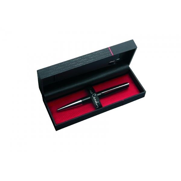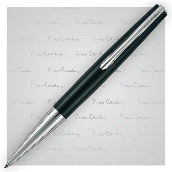 Klasyczny długopis metalowy z czarnym lakierowanym korpusem i chromowaną strefą chwytu oraz klipsem. Wyposażony w wysokiej jakości niebieski wkład z końcówką 1 mm. Wkład można wielokrotnie napełniać. W zestawie z wkładem zapasowym piszącym na czarno. Zapakowany w eleganckie pudełko prezentowe z certyfikatem autentyczności Pierre Cardin.