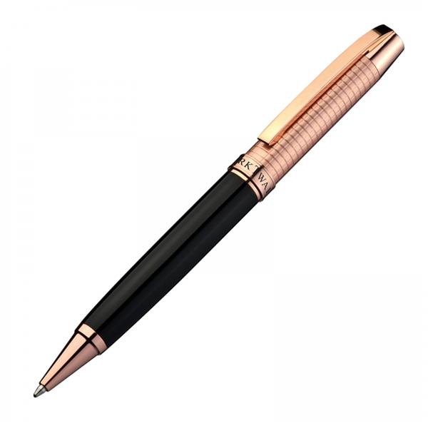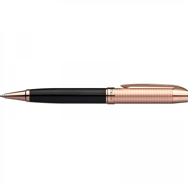 Wysokiej jakości długopis z kolekcji Mark Twain z mechanizmem obrotowym i niebieskim wkładem. Zapakowany w ozdobne, lakierowane etui.