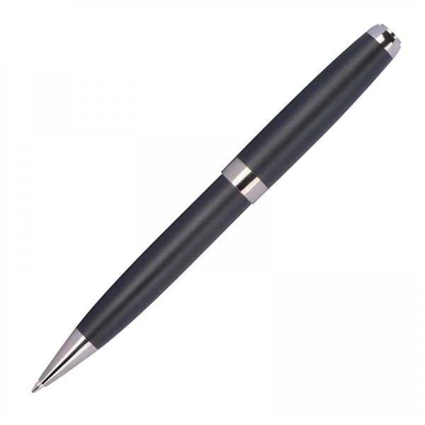 Długopis marki Mark Twain z mechanizmem obrotowym, o matowej powłoce ze wstawkami w kolorze gun metal, z wkładem typu Parker.