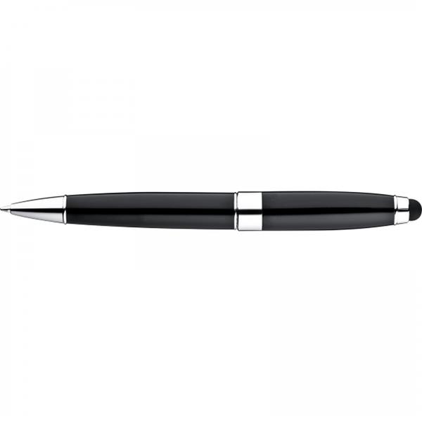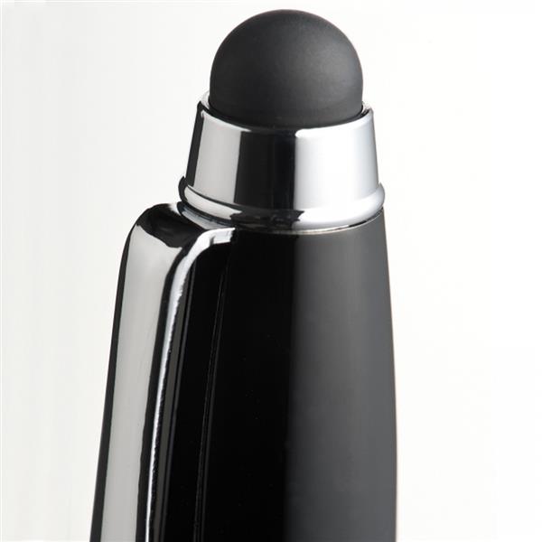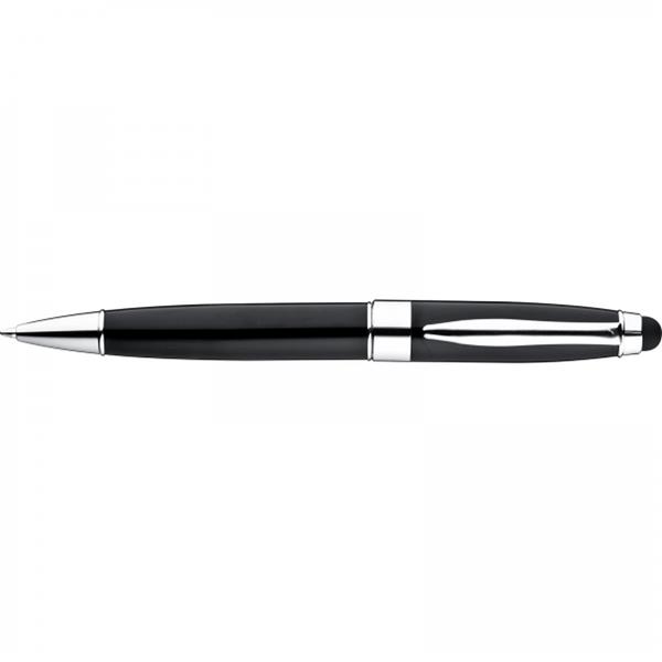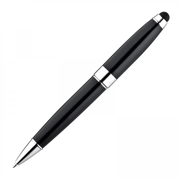 Długopis metalowy z mechanizmem obrotowym. Posiada duży, niebieski wkład oraz końcówkę do obsługi ekranów dotykowych.
