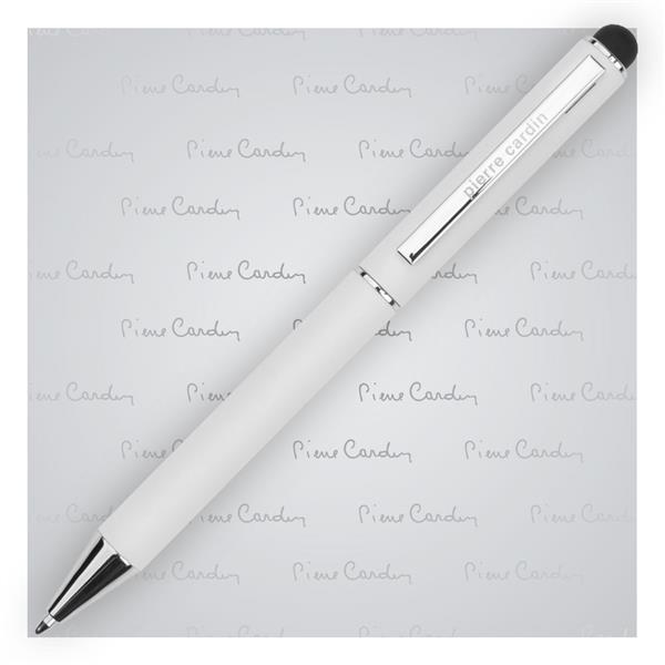 Luksusowy długopis aluminiowy z przyjemną w dotyku powierzchnią soft touch i srebrnymi detalami. Posiada wysokiej jakości niebieski wkład z końcówką 1 mm oraz funkcję touch pen. Zapakowany w eleganckie etui prezentowe z certyfikatem autentyczności Pierre Cardin. Rozmiar: 1 x 14 cm Kolor: Biały