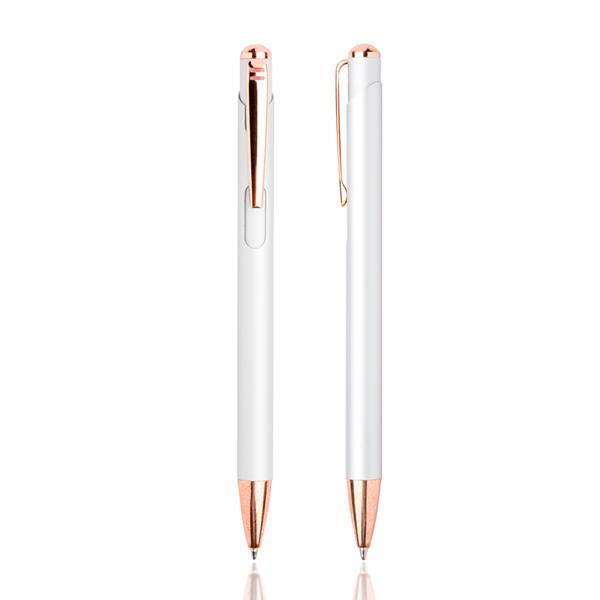 UWAGA! KOLOR SREBRNY – NIE BIAŁYZachwycający metalowy długopis w nowoczesnym stylu glamour. Dostępny w bogatej gamie kolorystycznej. Długopis charakteryzuje się powierzchnią soft touch, posiada zdobienia w złotym odcieniu oraz załączony niebieski wkład piszący. Idealny do laserowego grawerowania – otrzymujemy w ten sposób błyszczące znakowanie