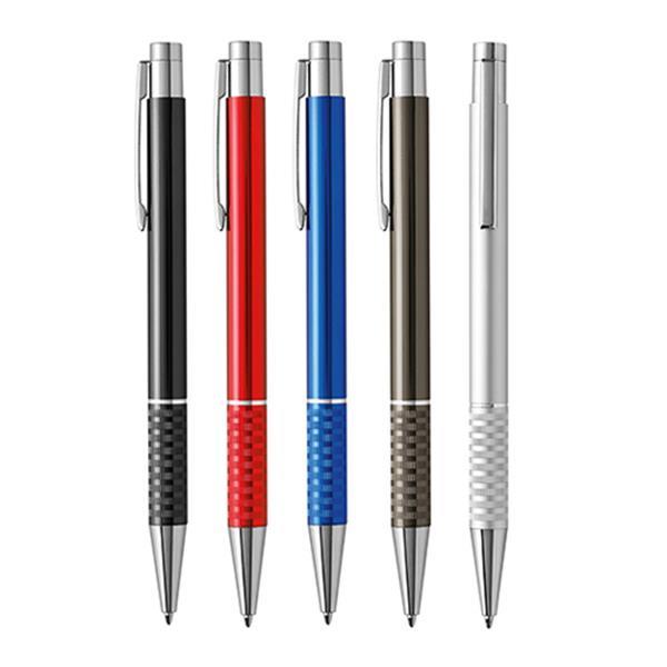 Metalowy długopis z elementami w srebrnym kolorze, z mechanizmem wciskanym, pisze na czarno. Rozmiar: 14 x 1 cm L0 (grawer laserowy): 5 x 0,6 cm Kolor: Czerwony