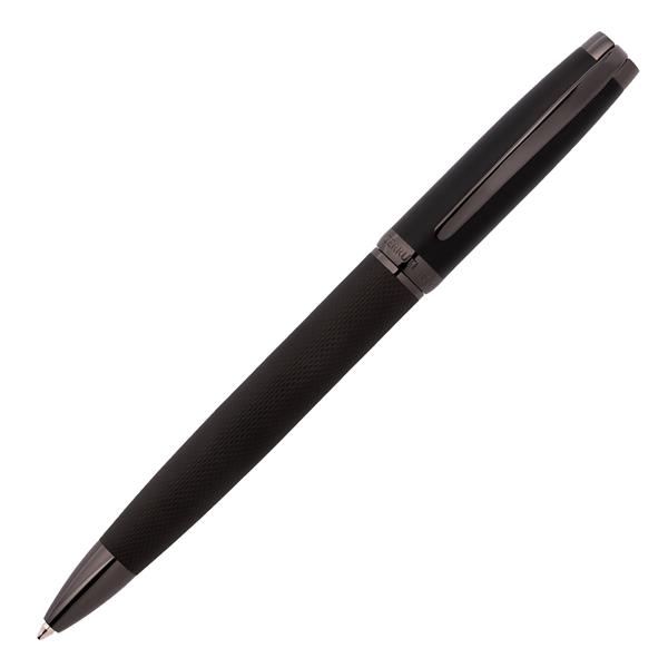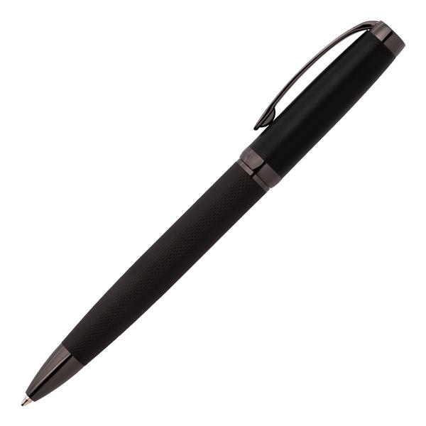 Długopis Myth to połączenie delikatnej, pięknie lakierowanej nasadki i grawerowanego korpusu w czarnym kolorze. Korpus ten ozdobiony jest błyszczącymi, ciemnymi lamówkami, które nadają mu luksusowy i nowoczesny wygląd.