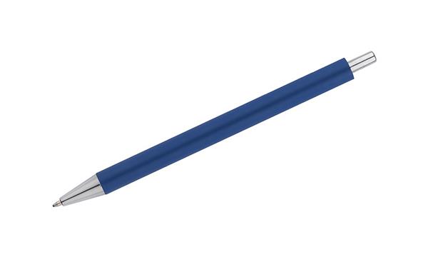 Długopis NOVI wykończony przyjemną w dotyku gumowaną powierzchnią z chromowanymi elemantami w kolorze srebrnym. Wkład w kolorze niebieskim.