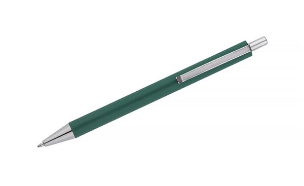 Długopis NOVI wykończony przyjemna w dotyku gumowana powierzchnią z chromowanymi elemantami w kolorze srebrnym. Wkład w kolorze niebieskim.