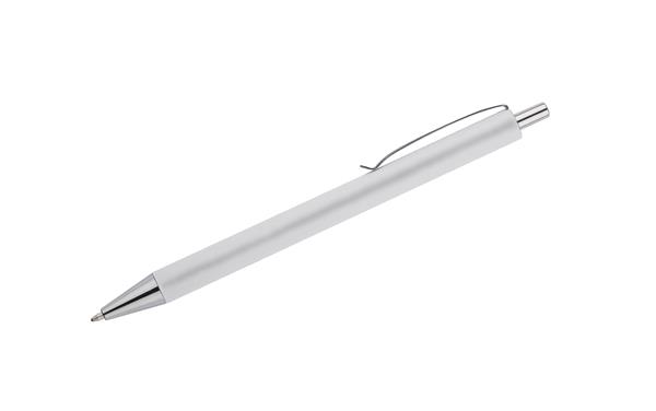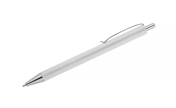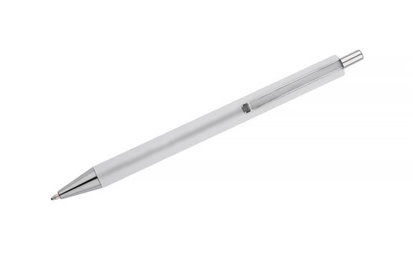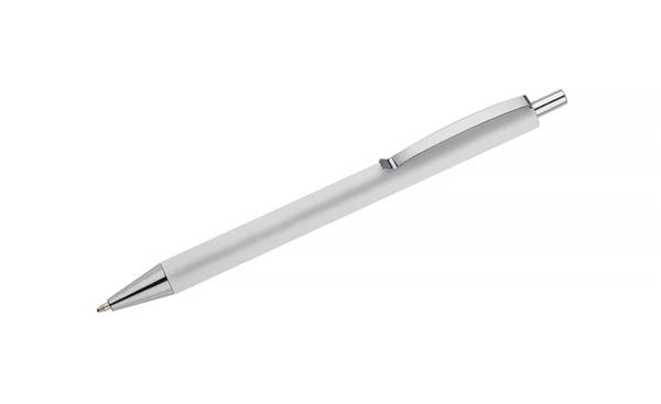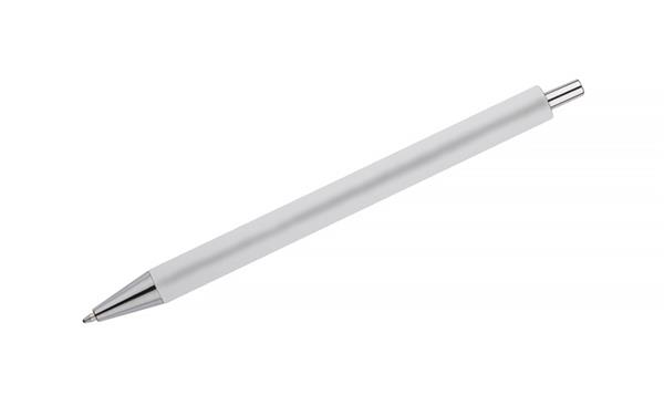 Długopis NOVI wykończony przyjemna w dotyku gumowana powierzchnią z chromowanymi elemantami w kolorze srebrnym. Wkład w kolorze niebieskim.