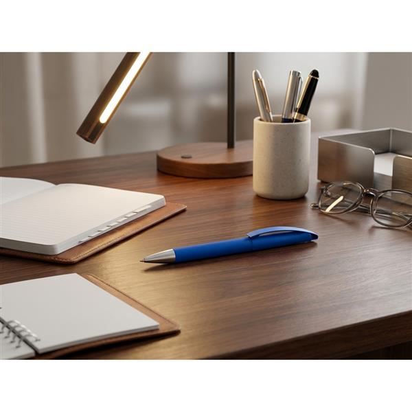 Długopis z ABS z szerokim aluminiowym klipem do grawerowania, wkład półżelowy w kolorze niebieskim w komplecie, włączanie typu „twist”