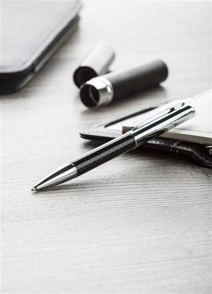 Metalowy długopis, niebieski wkład.