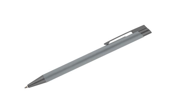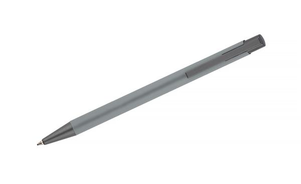 Długopis OPTIMA łączy w sobie elegancję i prostotę. Smukły korpus wykonany został z aluminium i pokryty gumowaną farbą, która tworzy przyjemną w dotyku powłokę. Długopis automatyczny. Wykończenia w kolorze grafitowym. Wkład w kolorze niebieskim.