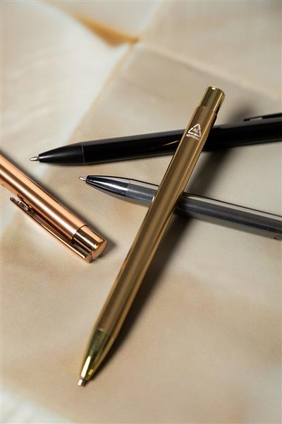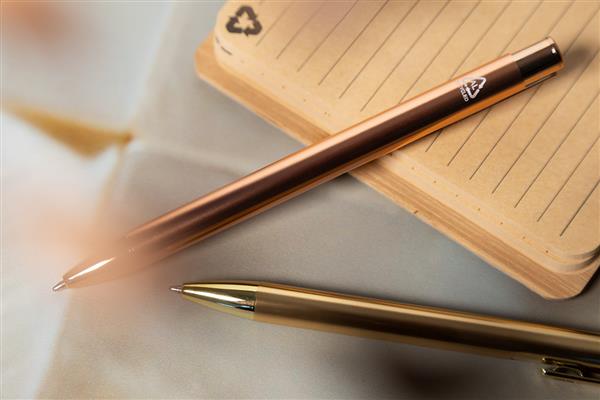 Długopis z recyklingowanego aluminium z błyszczącym metalicznym wykończeniem. Z niebieskim wkładem.