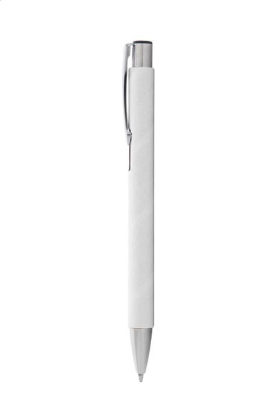 Długopis z papieru z makulatury metalowymi elementami. Z niebieskim wkładem.