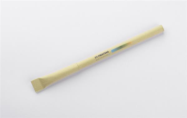 Długopis PINKO wykonany jest z papieru i wyposażony w dopasowaną papierową zatyczkę. Prosta forma i matowa powierzchnia nadają mu naturalny, stonowany wygląd. Wkład o grubości pisania 1,0 mm zapewnia płynne i równomierne pisanie. To praktyczny gadżet reklamowy, który sprawdzi się w biurze, szkole i podczas wydarzeń promocyjnych. Dostępny z możliwością znakowania logo.