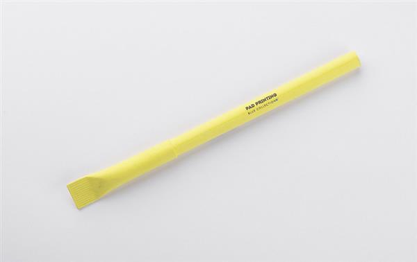 Długopis PINKO wykonany jest z papieru i wyposażony w dopasowaną papierową zatyczkę. Prosta forma i matowa powierzchnia nadają mu naturalny, stonowany wygląd. Wkład o grubości pisania 1,0 mm zapewnia płynne i równomierne pisanie. To praktyczny gadżet reklamowy, który sprawdzi się w biurze, szkole i podczas wydarzeń promocyjnych. Dostępny z możliwością znakowania logo.