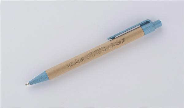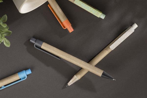 Długopis TIKO wykonany został z myślą o ponownym wykorzystaniu surowców. Jego korpus wykonany jest z papieru po recyklingu, a końcówki z tworzywa z domieszką słomy, która ogranicza ilość tworzywa sztucznego potrzebnego do produkcji. Prosty, ponadczasowy wzór. Długopis automatyczny. Wkład typu X20 w kolorze niebieskim.