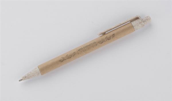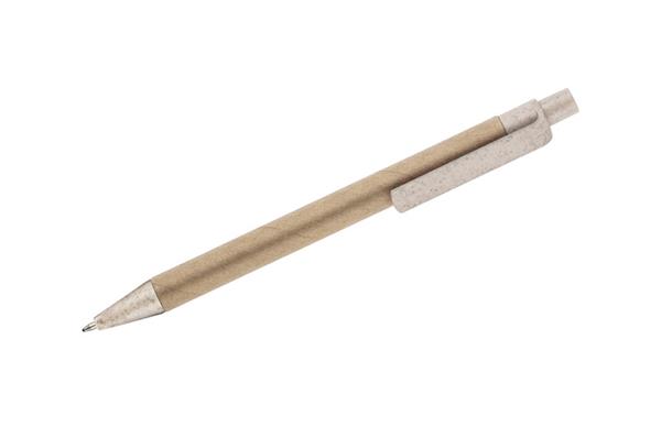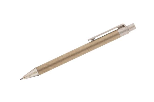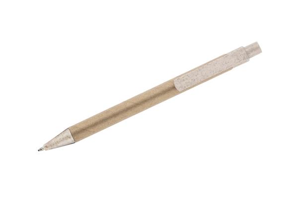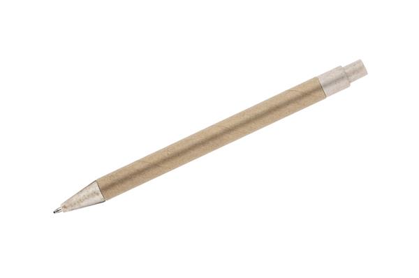 Długopis TIKO wykonany został z myślą o ponownym wykorzystaniu surowców. Jego korpus wykonany jest z papieru po recyklingu, a końcówki z tworzywa z domieszką słomy, która ogranicza ilość tworzywa sztucznego potrzebnego do produkcji. Prosty, ponadczasowy wzór. Długopis automatyczny. Wkład typu X20 w kolorze niebieskim.
