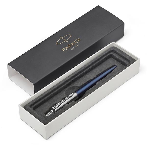 Długopis Parker Jotter Core, wkład w niebieskim kolorze, zapakowany w pudełko upominkowe, produkt wykonany z metalu i stali nierdzewnej