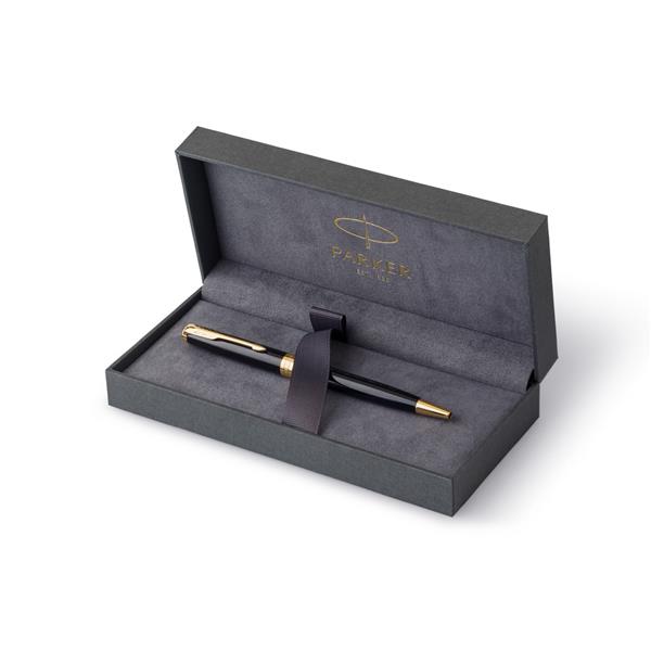 Długopis Parker Sonnet, z mechanizmem obrotowym, wkład w kolorze czarnym, długopis zapakowany w pudełko upominkowe, produkt wykonany z metalu i stali nierdzewnej