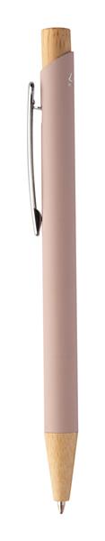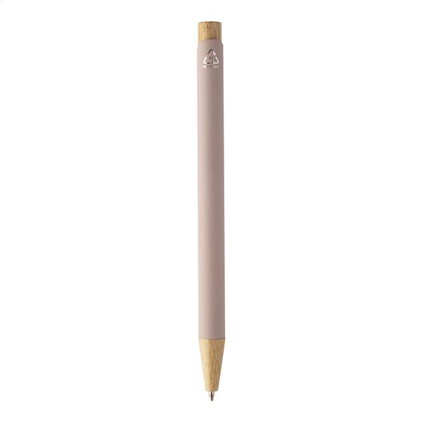 Długopis z aluminium pochodzącego z recyklingu, z częściami bambusowymi, gumowanym wykończeniem i chromowanym klipem. Ze specjalną powłoką pod grawer lustrzany. Z niebieskim wkładem.