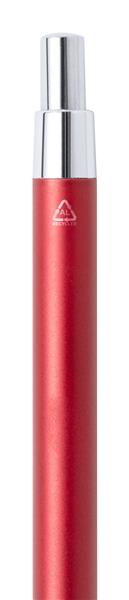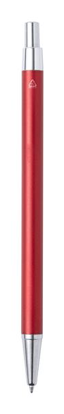 Aluminiowy długopis z recyklingu z chromowanymi elementami. Z niebieskim wkładem. Description: Aluminiowy długopis z recyklingu z chromowanymi elementami. Z niebieskim wkładem. Primary Color: czerwony Rodzaj długopisy: Długopis Rodzaj mechanizmu: wciskany Rozmiar: o9×140 mm Material 1: Aluminium z recyklingu Rozmiar kulki we wkładzie: 1 mm Kolor wkładu: Niebieski