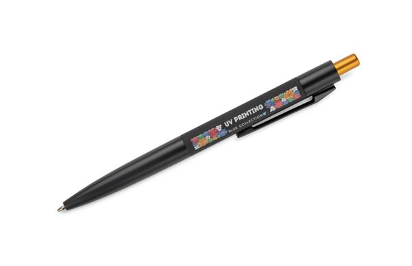 Długopis PAUL to elegancki model o klasycznej formie i lakierowanym wykończeniu. Czarny korpus uzupełnia kolorowy przycisk oraz efektowne, lustrzane logo, które staje się widoczne po wykonaniu graweru. Mechanizm automatyczny ułatwia codzienne użytkowanie, a wkład typu X20 z tuszem o grubości pisania 0,7 mm zapewnia płynny, równy zapis. Połączenie połysku i kontrastowych detali nadaje długopisowi nowoczesny […]