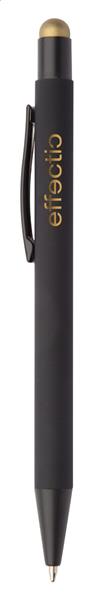 Aluminiowy długopis z końcówką do ekranów dotykowych i gumowanym wykończeniem. Posiada specjalną powłokę pod grawer lustrzany pasujący kolorystycznie do gumki.