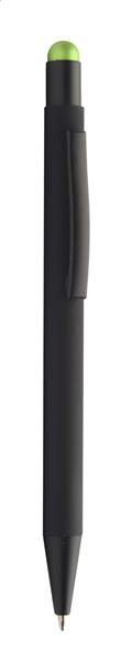 Aluminiowy długopis z końcówką do ekranów dotykowych i gumowanym wykończeniem. Posiada specjalny podkład pod lustrzany grawer w kolorze gumki. Niebieski wkład.