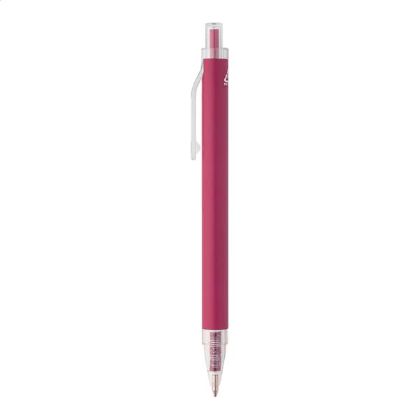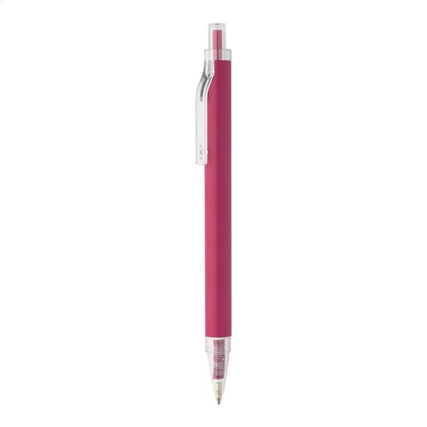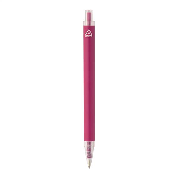 Długopis z recyklingowanego aluminium z matowym wykończeniem i przezroczystymi elementami z RPET. Z niebieskim wkładem.
