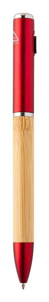 Długopis z 1 latarką LED z bambusa i przetworzonego plastik ABS. Z niebieskim wkładem i baterią guzikową.