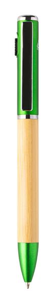 Długopis z 1 latarką LED z bambusa i przetworzonego plastik ABS. Z niebieskim wkładem i baterią guzikową.