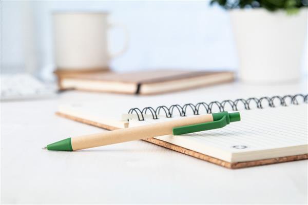Długopis z papieru z recyklingu z plastikowymi elementami z biodegradowalnego PLA. Z niebieskim wkładem.