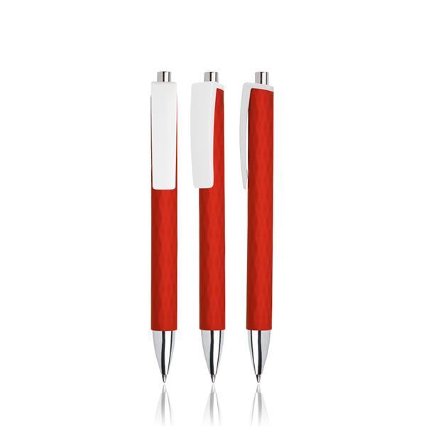 Długopis plastikowy z dużym klipsem, z mechanizmem wciskanym, pisze na czarno. Rozmiar: 14 x 1,1 cm T2 (tampodruk): 3 x 1 cm Kolor: Czerwony