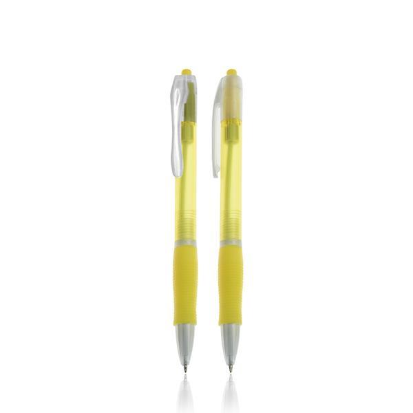 Długopis plastikowy z ergonomicznym uchwytem i z mechanizmem wciskanym, pisze na czarno.