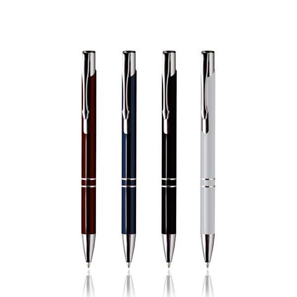 Długopis plastikowy z metalowym klipsem i mechanizmem wciskanym, pisze na czarno. Rozmiar: 14 x 1,1 cm T1 (tampodruk): 5 x 0,6 cm DC0 (długopisy, zapalniczki): 5 x 0,5 cm Kolor: Czarny