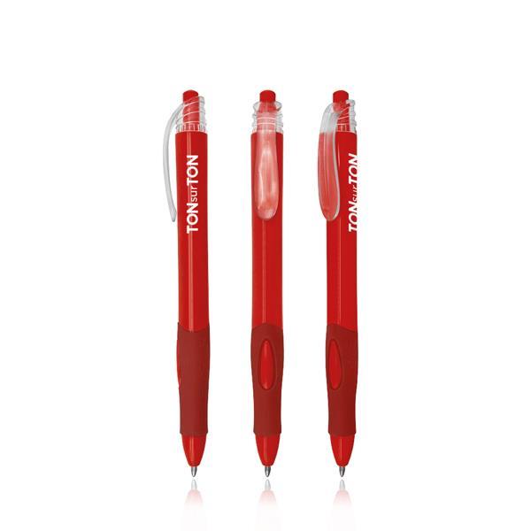 Plastikowy długopis z przezroczystym klipsem, z mechanizmem wciskanym, pisze na czarno. Rozmiar: 14 x 1 cm T1 (tampodruk): 4,5 x 0,6 Kolor: Czarny