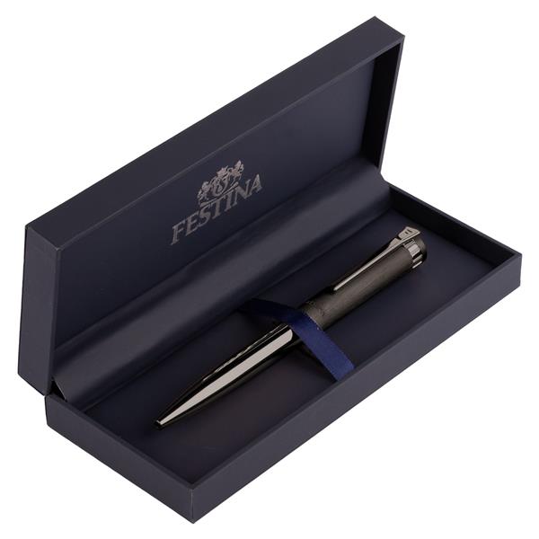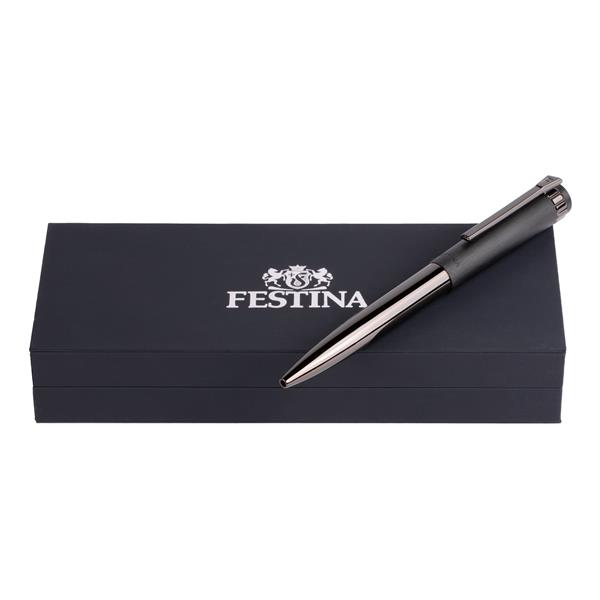 Pióro kulkowe Prestige w kolorze czarnym inspirowane jest zegarkami Festina. Charakteryzuje się elegankim, minimalistycznym wykończeniem. To połączenie matowej, chromowanej nasadki i błyszczącego chromowanego korpusu i lamówek.