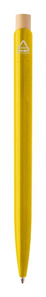 Długopis z recyklingowanego plastiku ABS z bambusowym przyciskiem. Z niebieskim wkładem. Description: Długopis z recyklingowanego plastiku ABS z bambusowym przyciskiem. Z niebieskim wkładem. Primary Color: żółty Rodzaj długopisy: Długopis Rozmiar: o10×145 mm Material 2: Bambus Material 1: ABS z recyklingu Rodzaj mechanizmu: wciskany Kolor wkładu: Niebieski