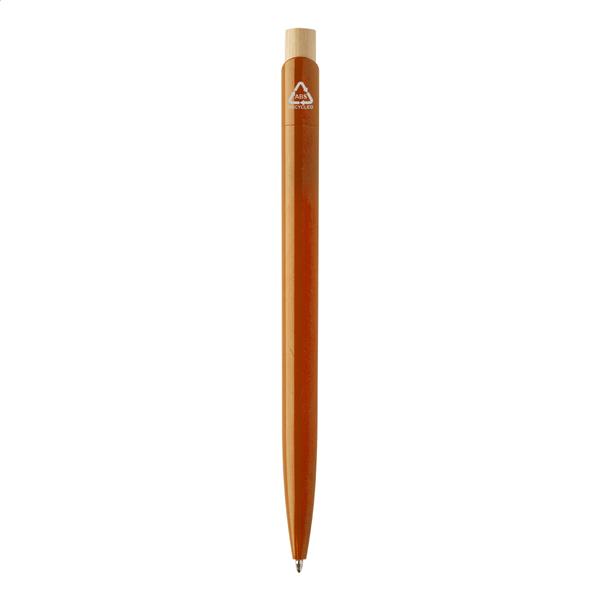 Długopis z recyklingowanego plastiku ABS z bambusowym przyciskiem. Z niebieskim wkładem.