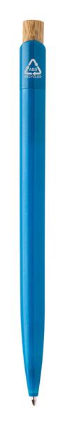 Długopis z recyklingowanego plastiku ABS z bambusowym przyciskiem. Z niebieskim wkładem.