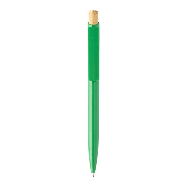 Długopis z recyklingowanego plastiku ABS z bambusowym przyciskiem. Z niebieskim wkładem.