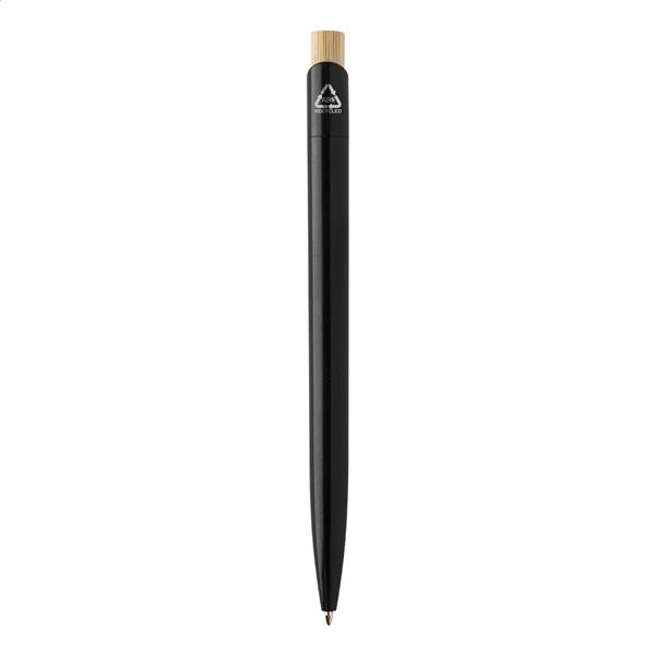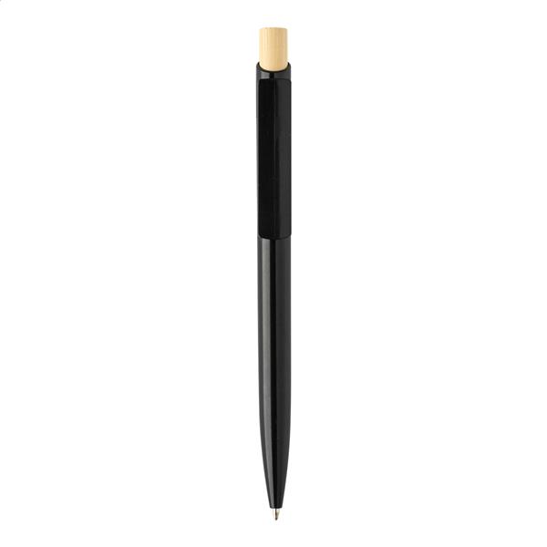 Długopis z recyklingowanego plastiku ABS z bambusowym przyciskiem. Z niebieskim wkładem.