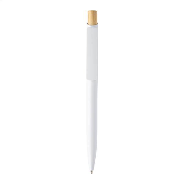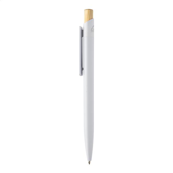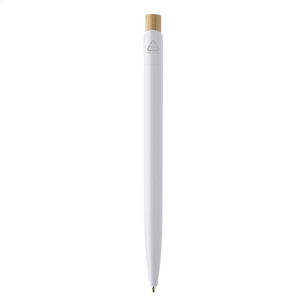 Długopis z recyklingowanego plastiku ABS z bambusowym przyciskiem. Z niebieskim wkładem.