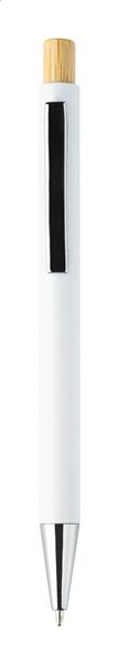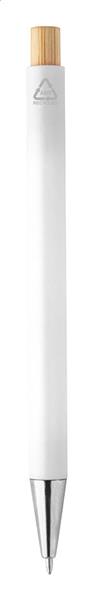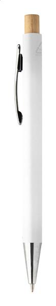 Długopis z tworzywa sztucznego ABS z recyklingu z bambusowym przyciskiem i metalowym klipem. Z niebieskim wkładem.