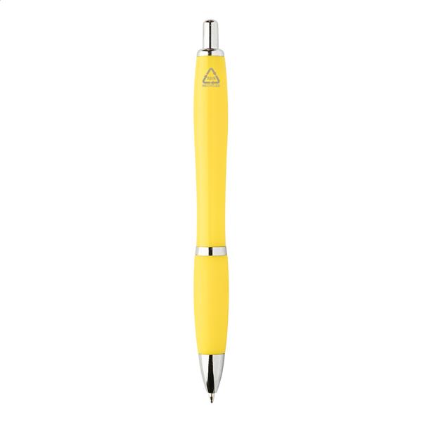 Długopis z tworzywa sztucznego ABS z recyklingu z uchwytem w pasującym kolorze i chromowanymi elementami. Z niebieskim wkładem.