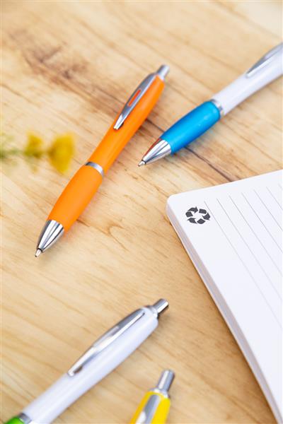 Długopis z tworzywa sztucznego ABS z recyklingu z uchwytem w pasującym kolorze i chromowanymi elementami. Z niebieskim wkładem. Description: Długopis z tworzywa sztucznego ABS z recyklingu z uchwytem w pasującym kolorze i chromowanymi elementami. Z niebieskim wkładem. Primary Color: pomarańcz Rozmiar: o13×140 mm Rodzaj długopisy: Długopis Material 1: ABS z recyklingu Kolor wkładu: Niebieski